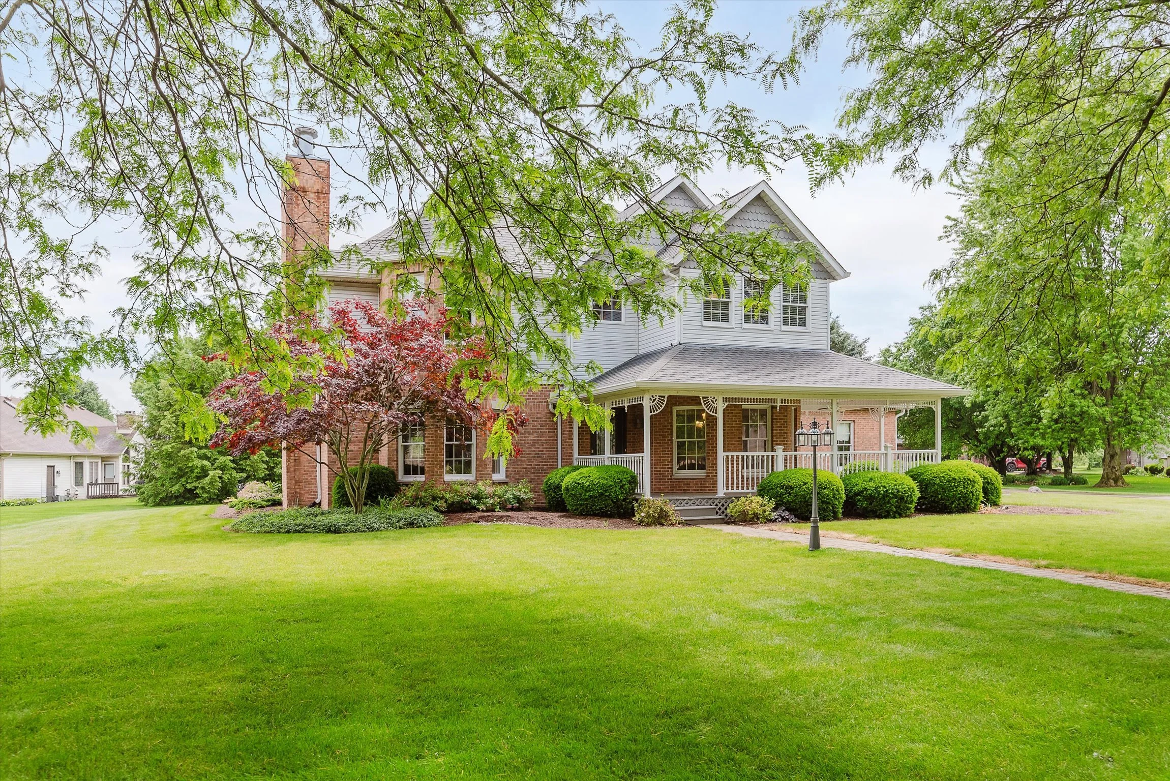 Nestled in Woodland Trails with a new price, this charming 3-bedroom, 2.5-bath home offers nearly 3,000 square feet of beautifully maintained living space on a beautiful lot. With its wraparound front porch, classic brick and siding exterior, and lush landscaping, the curb appeal alone makes a lasting impression! Inside, are spacious living areas filled with natural light and timeless details, including hardwood floors, crown molding, and three fireplaces (one upstairs in master). The large living room opens to a sunroom with panoramic backyard views-perfect for relaxing or entertaining! The kitchen has rich wood cabinetry, granite countertops, stainless appliances, a gas cooktop, and double oven. Upstairs, the primary suite features a walk-in closet and an updated bath with double vanities, a tiled walk-in shower, and jacuzzi tub. Two additional bedrooms share a full bath. Outside, enjoy the peaceful back deck, surrounded by mature trees and some open green space. Located in the Yorktown School District and off the Player's Club golf course with easy access to local amenities. This home blends comfort, character, and convenience-truly a rare find!
